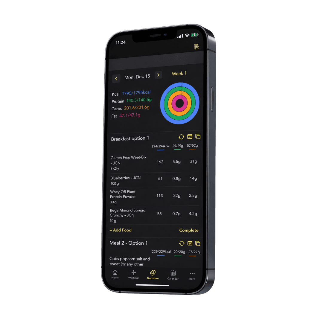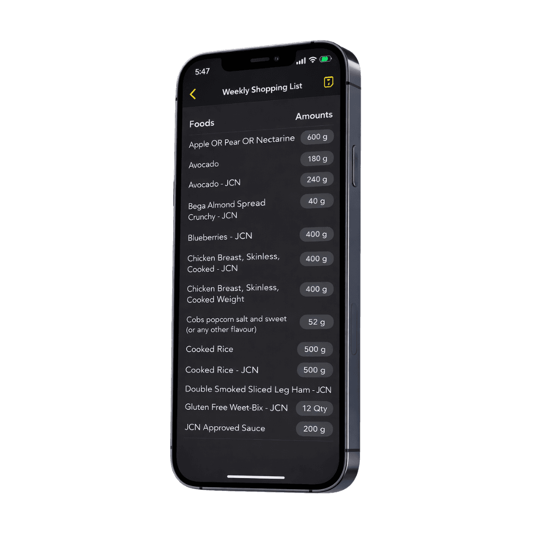 As a JCN client, you will have access to our exclusive app where you will be able to access your nutrition & training plans. This will include features such as food logging, workout logging, exercise video library, cardio tracking, daily water intake and access to our education hub.